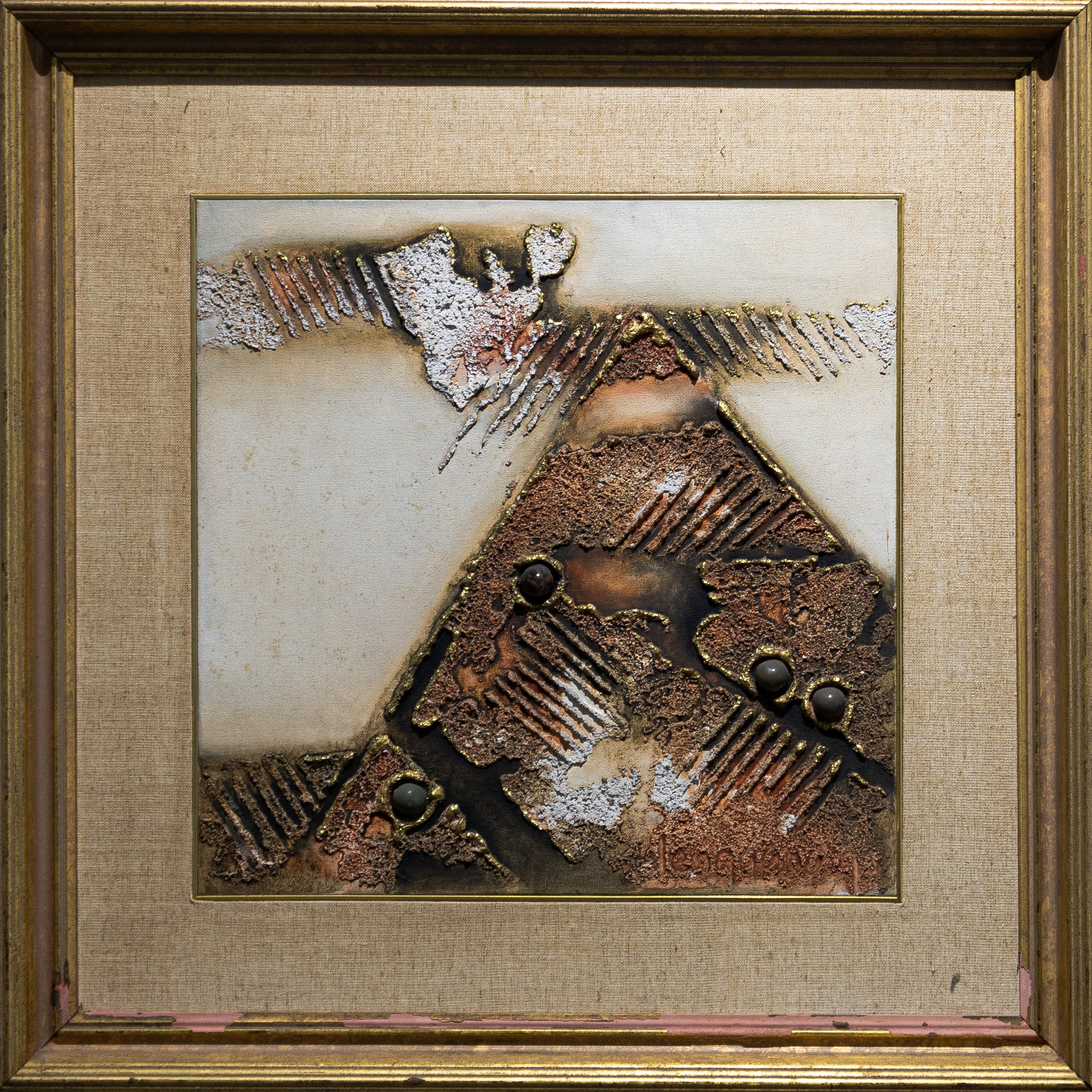 signed and dated, lower right mixed media on canvas 45 x 45 cm, 71 x 71 cm framed
