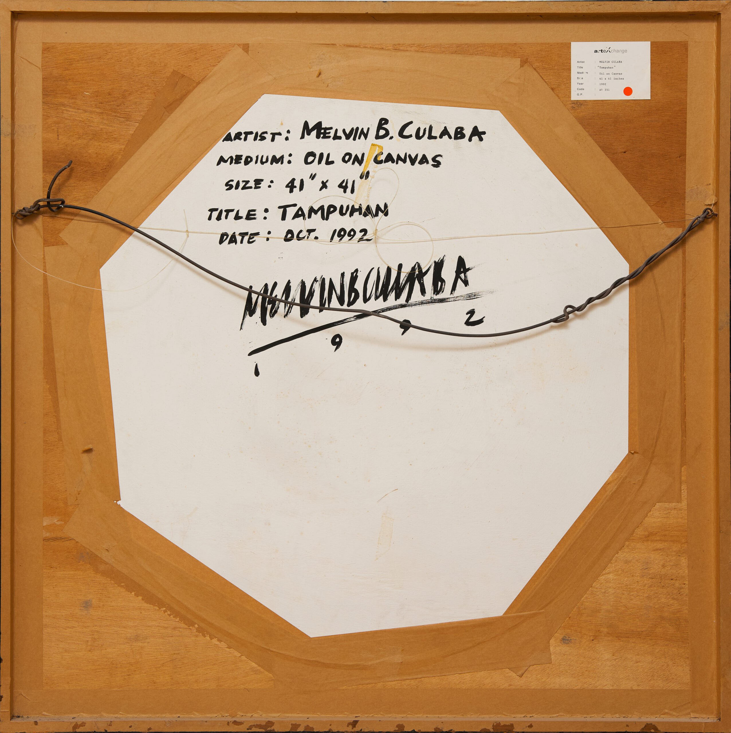 signed and dated upper centre; signed, titled, dated and inscribed on the back