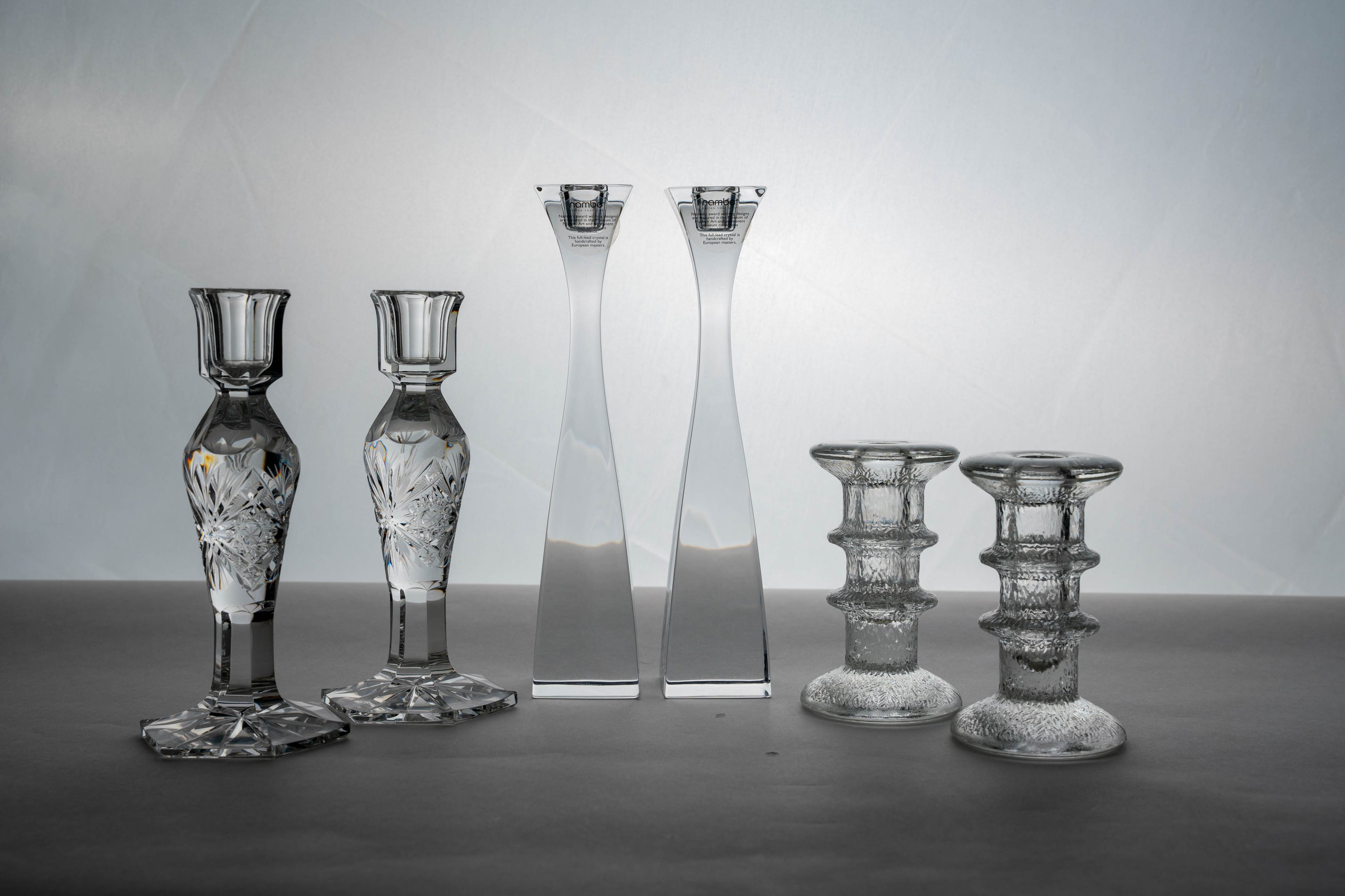 Three Pairs of Glass Candle Holders