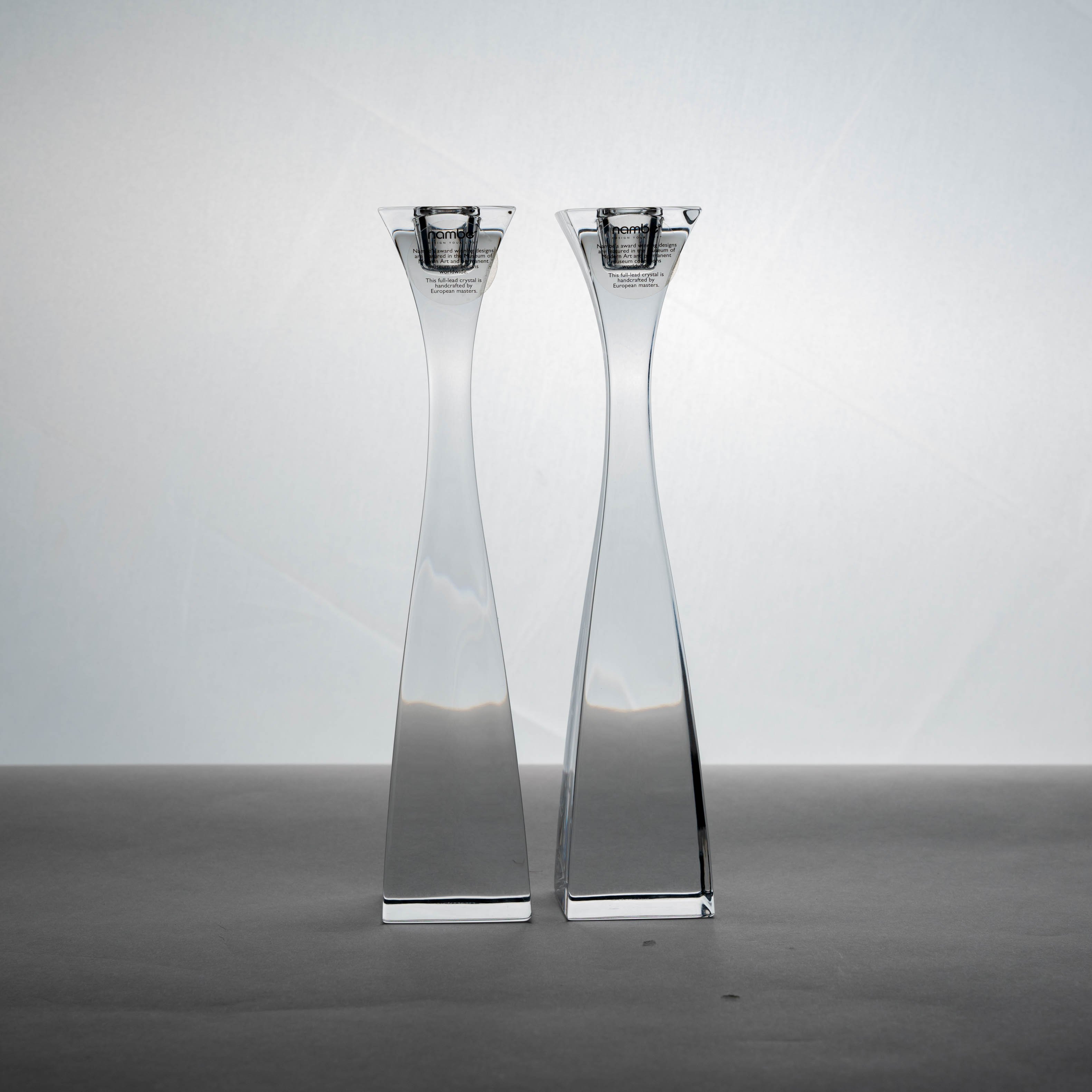 A Pair of Nambé Candle Holders (H24 x W5 x D5 cm)