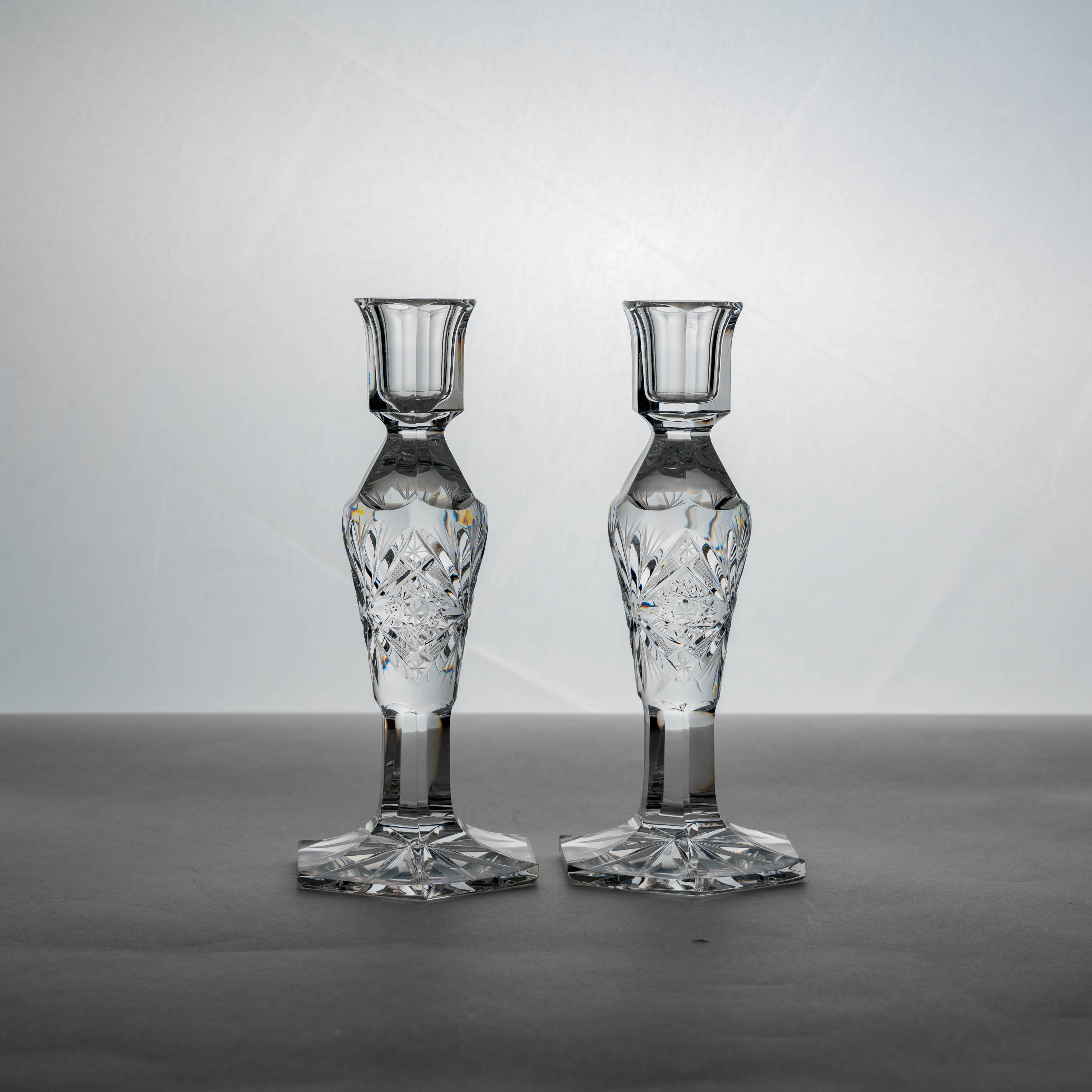 A Pair of Cut Crystal Candle Holders (L19.5 x W8 x D9 cm)